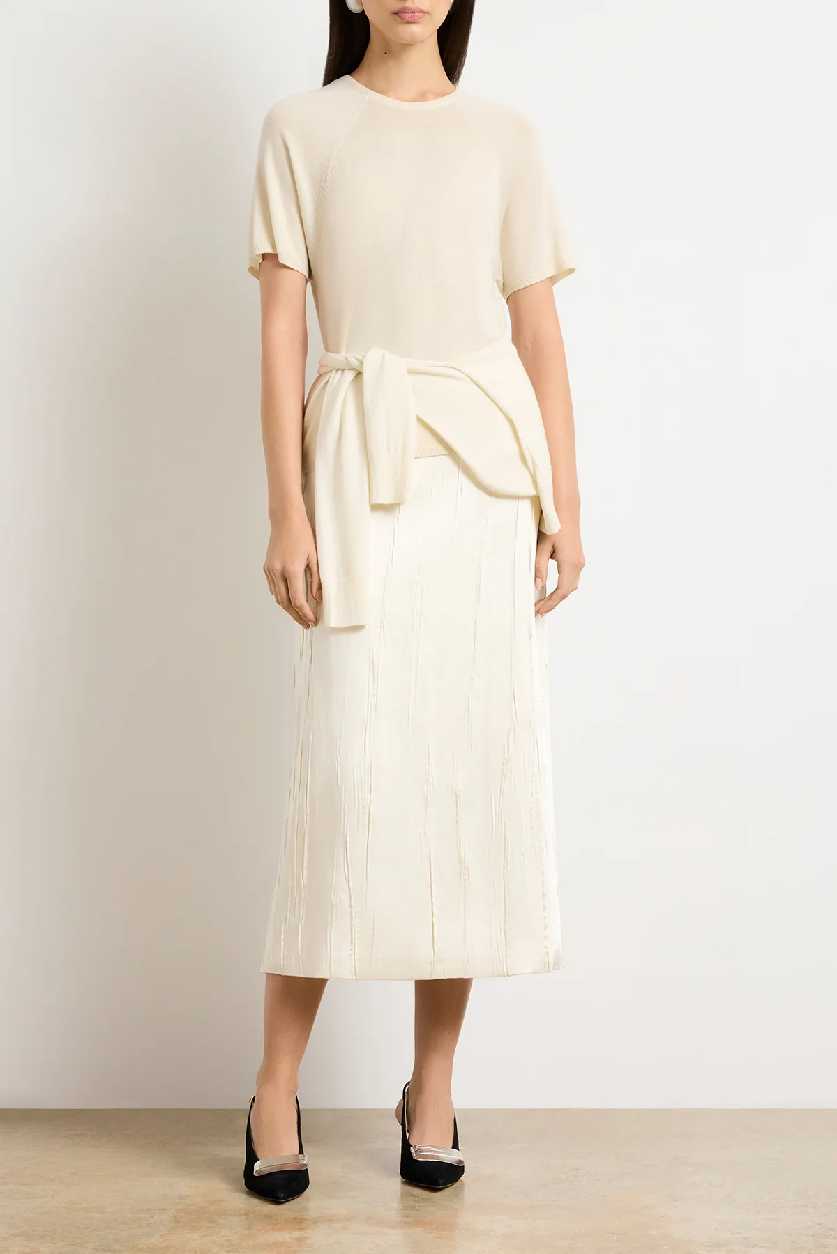 This knit t-shirt is crafted in fine cashmere for a lightweight, elevated take on an everyday essential. Designed with raglan sleeves and a relaxed silhouette, it combines casual ease with refined softness. Rib finishing at the neckline, sleeves, and hem adds subtle structure to the delicate jersey knit.