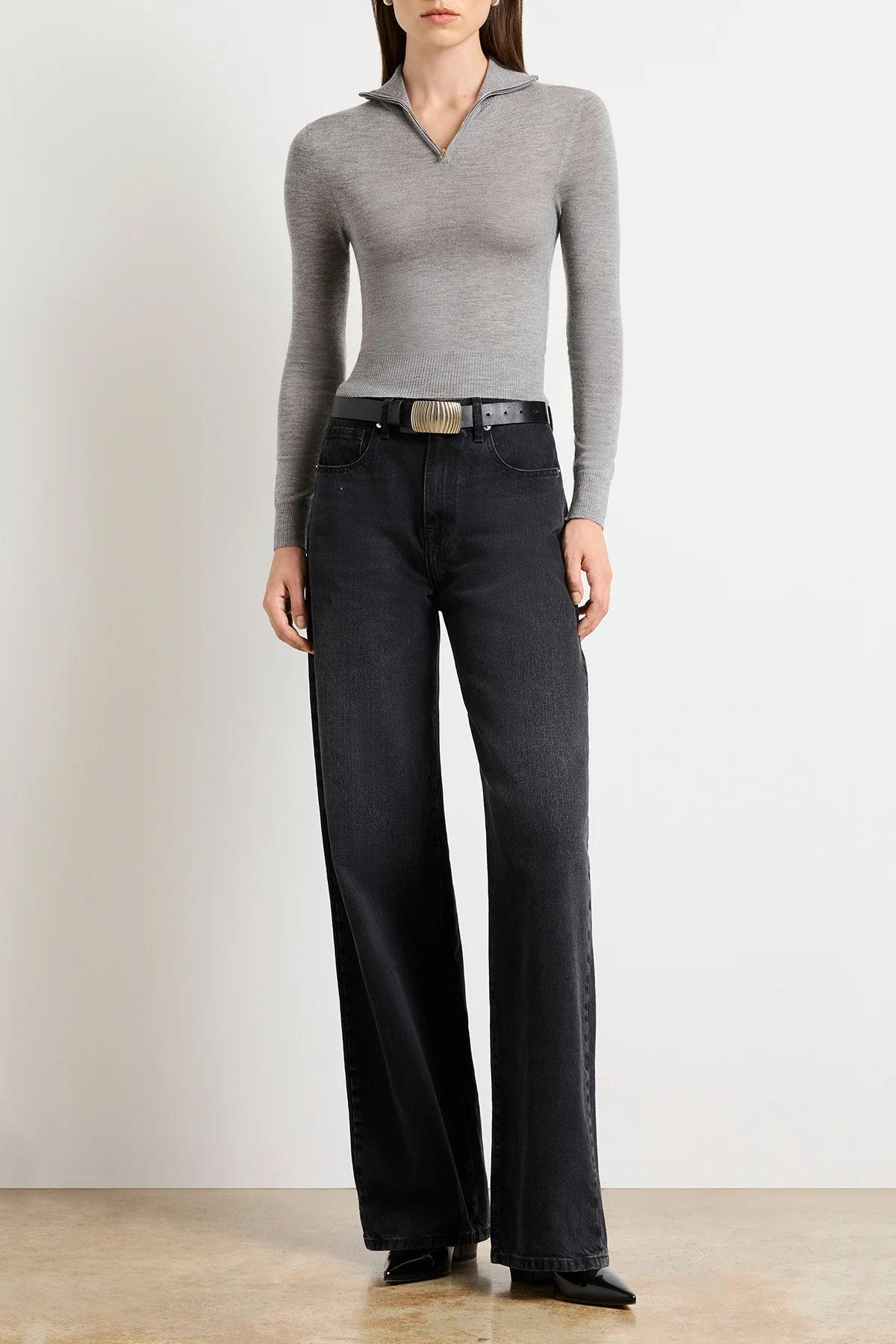 Knit from fine cashmere jersey, this sweater combines luxurious softness with a sleek, body-skimming silhouette. A modern zip mock neck adds versatility, while ribbed trims at the collar, cuffs, and hem lend subtle structure. Lightweight and refined, it’s a polished layer designed for effortless wear.